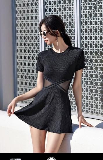 水着 ワンピース水着 シースルー フレアスカート ブラック