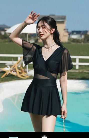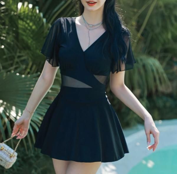 水着 ワンピース水着 フレアスカート シースルー ブラック