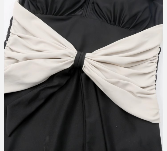 水着 ワンピース水着 Vネック リボン 大人シンプル ブラック