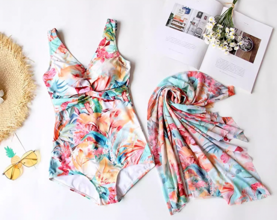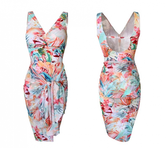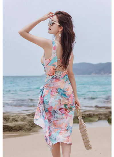 水着 ワンピース水着 花柄 バックコンシャス フェミニン