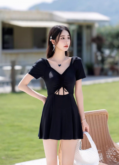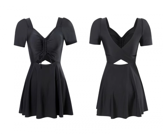 水着 ワンピース水着 大人シンプル フレアスカート ブラック