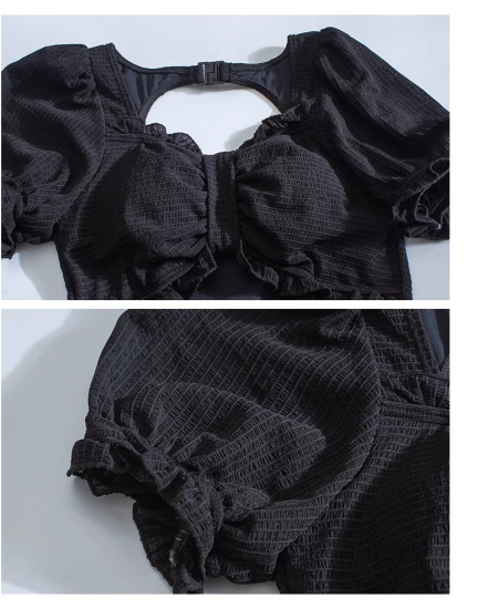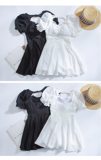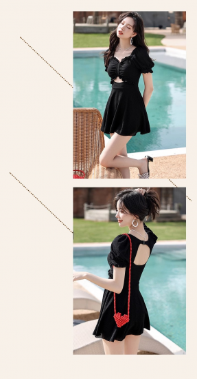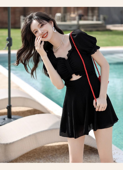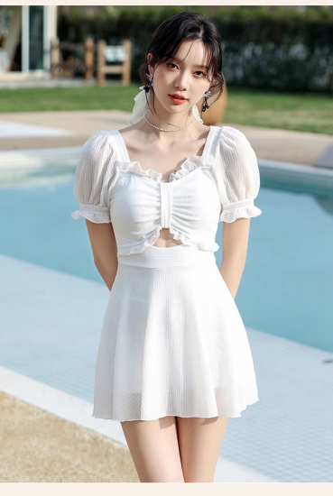 水着 ワンピース水着 フェミニン フレア パフスリーブ カットアウト 2カラー